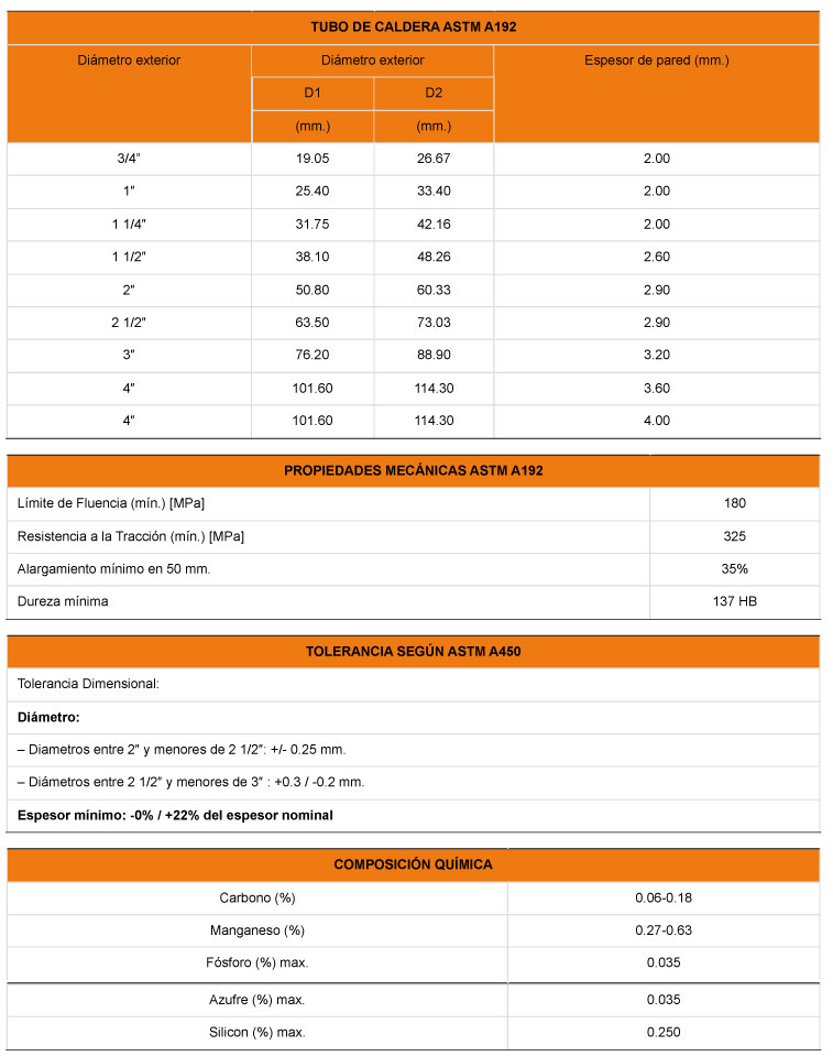 Descripción: Tubos de acero sin costura, de bajo contenido de carbono, de sección circular, laminados en caliente y fabricados bajo norma ASTM A 192.